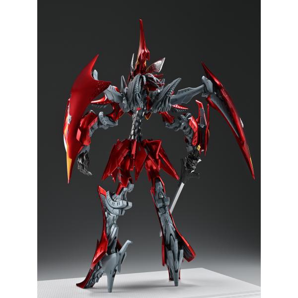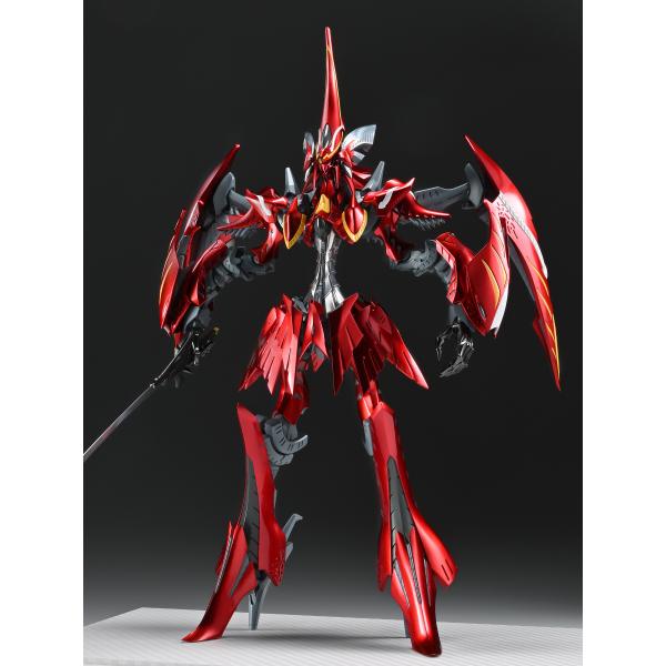 単行本14巻で登場した真紅のGTM、通称コブラ・ハーブこと「バーガ・ハリBS-R」をキット化。永野護氏監修のもと1/100スケールで立体化しました。初登場時よりその存在に惚れ込み、立体化に向けて準備を進めていた谷明氏がその思いを込め、原型製作しました。左右の巨大なアイドラ・フライヤーを忠実に再現、また特徴的な白蛇をまとう姿も造形で表現しています。負荷のかかる腹部は金属棒インサート成形を採用、右手には新規造型のガット・ブロウを持たせています。BS-R専用デカール付属。