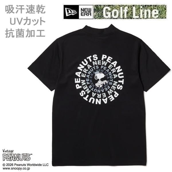 ニューエラ ゴルフ 半袖 ミッドネック Tシャツ ピーナッツ GOLF Circle ロゴ ブラック (14865851) 日本正規品 NEWERA