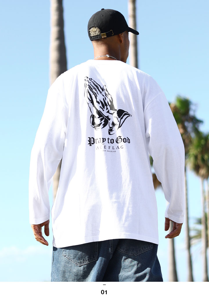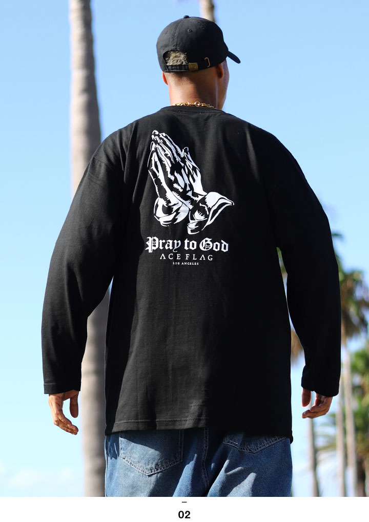 ACE FLAG ロンT 大きいサイズ エースフラッグ Tシャツ 長袖 神への祈り Pray to God 祈り手 プレイングハンズ