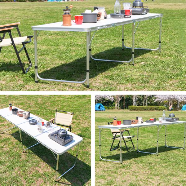 アウトドアテーブル 折りたたみ 240×60cm 高さ3段階調節 防水 ローテーブル アルミ レジャーテーブル 大きい キャンプ お花見 WEIMALL