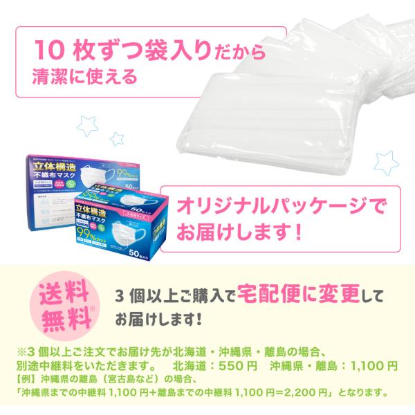 【クーポンで1箱288円】マスク 女性用 50枚 小さめ 99%カットフィルター 10枚ずつ個包装 使い捨てマスク 子供用 立体型 不織布 飛沫防止 ゆうパケット 送料無料