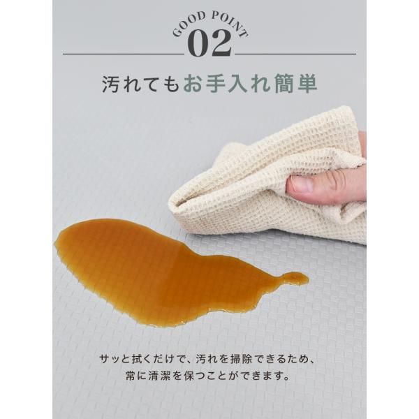 高い耐久性で水や火にも強いPVC素材を採用。キッチンの床をキズ・汚れから守ります!