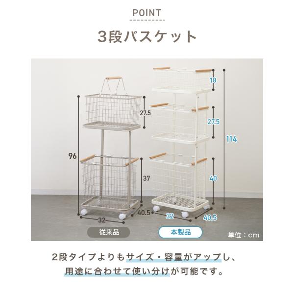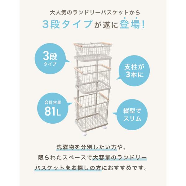 縦3段ランドリーバスケットです。