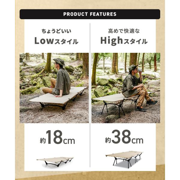 コット フォールディングコット キャンプ ベッド ハイ ロー 折りたたみベッド コンパクト 折り畳み 簡易ベッド 軽量 アウトドア イベント レジャー