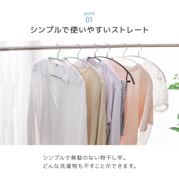ハンガーに掛けた洗濯物が風で移動せず、間隔を保って干せる便利なハンガー掛付きです。