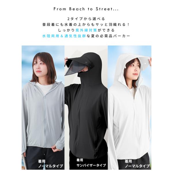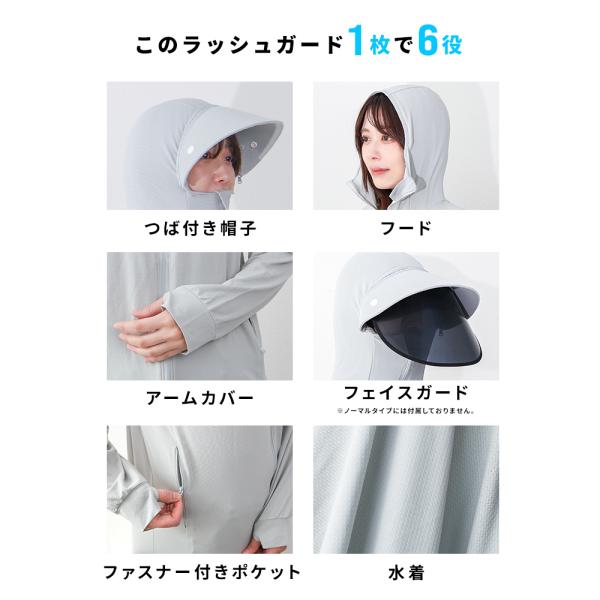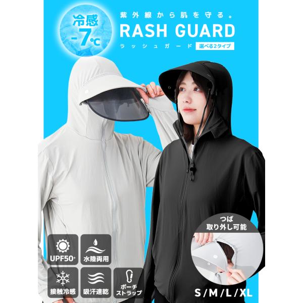 UVパーカー ラッシュガード レディース サンバイザー フード付き 長袖 UVカット おしゃれ 吸水 速乾 接触冷感 UPF50+ 紫外線対策 日焼け対策 水着 両用