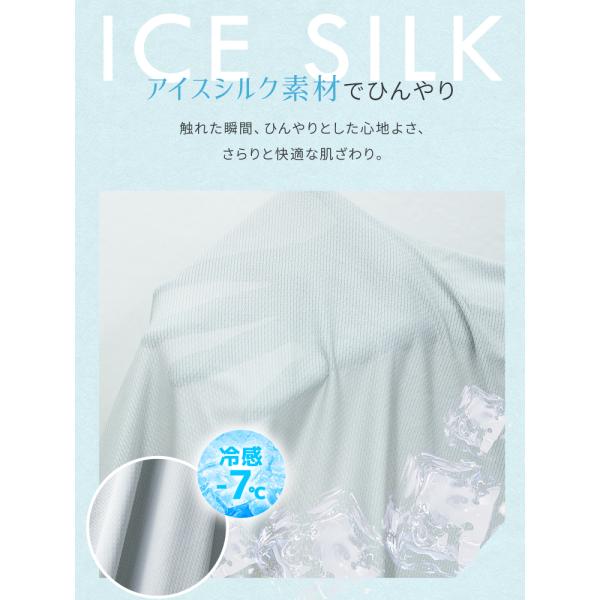 触れた瞬間、ひんやりとした心地よい『アイスシルク素材』で、さらりと快適な着心地です。