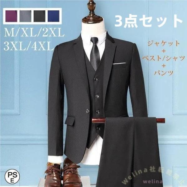 ビジネススーツ メンズ 大きいサイズ 3ピース スーツセット 冬 Welina ベスト付き テーラードジャケット 紳士用 フォーマル 通勤 結婚式にも