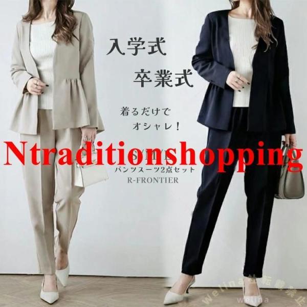 パンツスーツ レディース 2点セット 洗える Welina 卒業式 入学式 母 30代40代 ノーカラー 着回し フォーマル テーパード