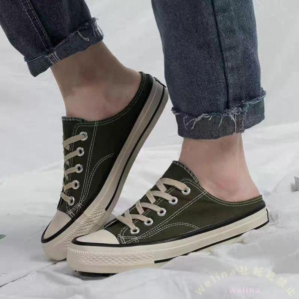 スリッポン メンズ かかとなし スニーカー キャンバスサンダル Welina レースアップ風 ローカット ぺたんこで楽 おしゃれスリッパ/サボ