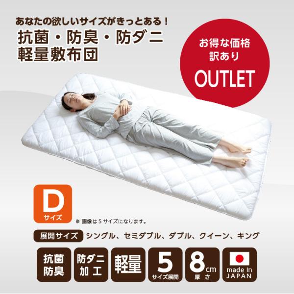 敷き布団 ダブル アウトレット 国産 日本製 抗菌 防臭 防ダニ 軽い 厚さ8センチ 自社工場生産品 メーカー直送 抗菌防臭防ダニ軽量敷きD 爆買
