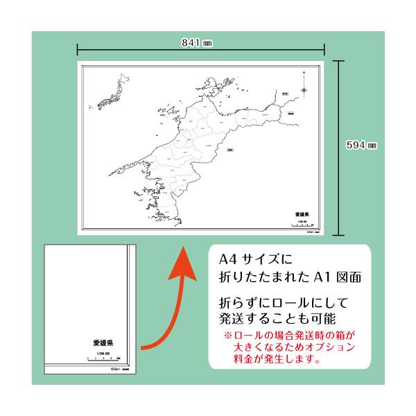 白地図 愛媛県|四国地方 地理 自由研究 大きな地図 受験勉強 夏休み 自宅学習 ビジネス 会議 A1