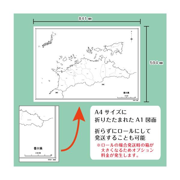 白地図 香川県|四国地方 地理 自由研究 大きな地図 受験勉強 夏休み 自宅学習 ビジネス 会議 A1