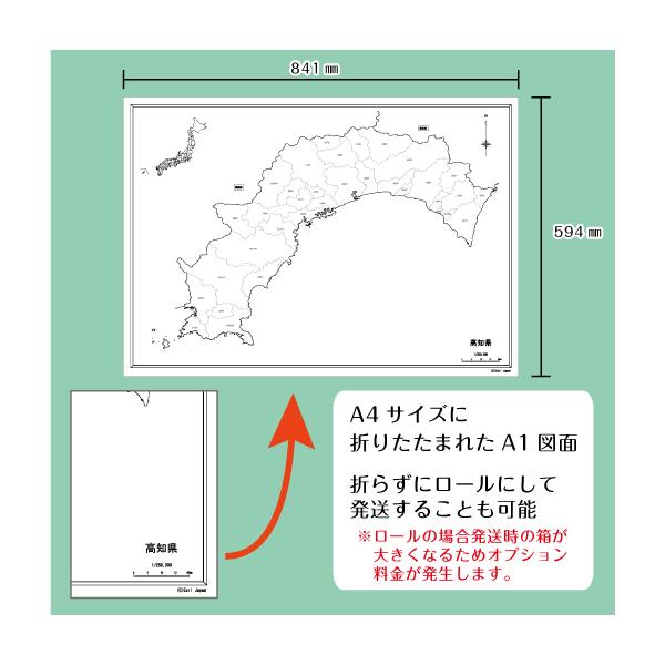 白地図 高知県|四国地方 地理 自由研究 大きな地図 受験勉強 夏休み 自宅学習 ビジネス 会議 A1