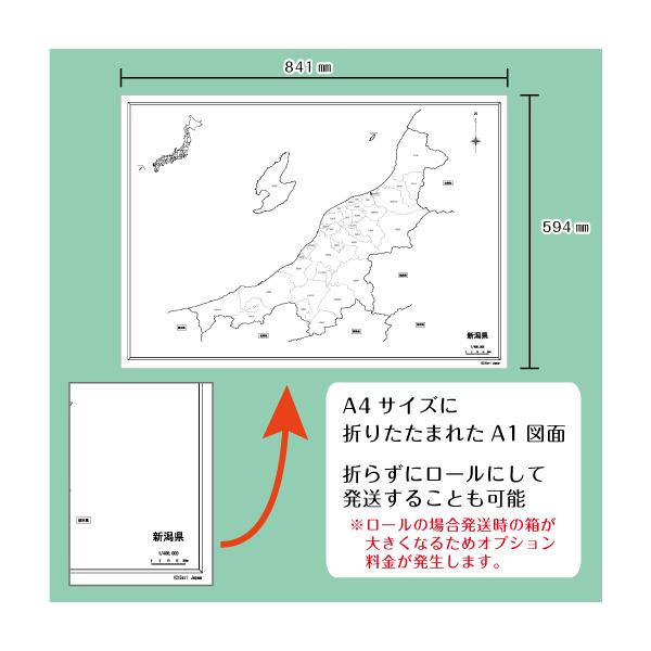 A1(W841mm×H594mm)サイズのシンプルな新潟県の白地図になります。