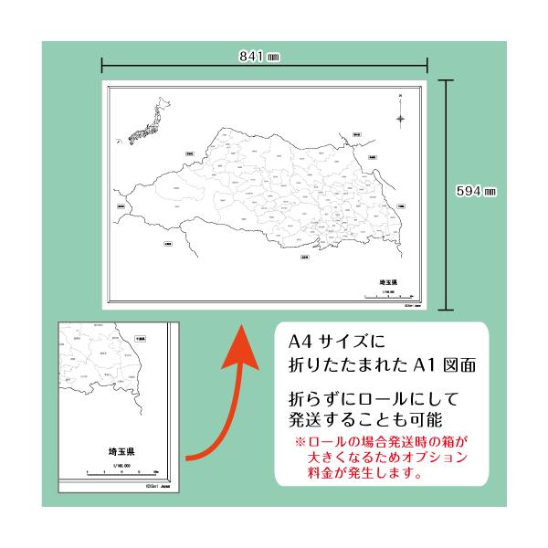 白地図 埼玉県|関東地方 地理 自由研究 大きな地図 受験勉強 夏休み 自宅学習 ビジネス 会議 A1