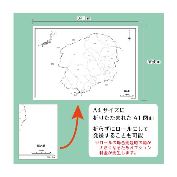 白地図 栃木県|関東地方 地理 自由研究 大きな地図 受験勉強 夏休み 自宅学習 ビジネス 会議 A1