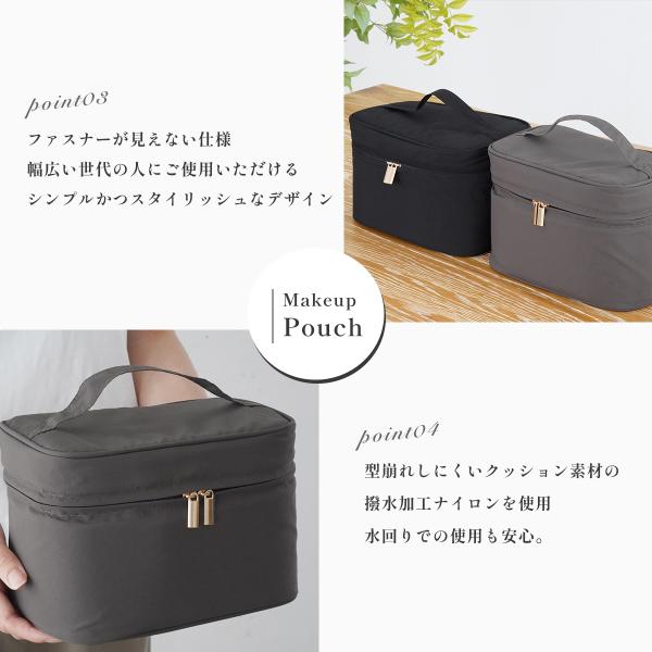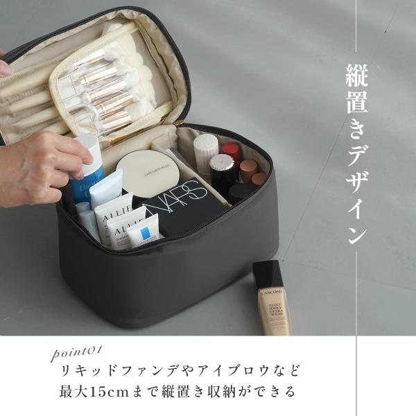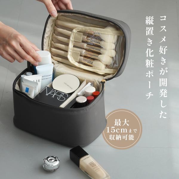 立て入れ収納で見つけやすく、取り出しやすい大容量メイクポーチ