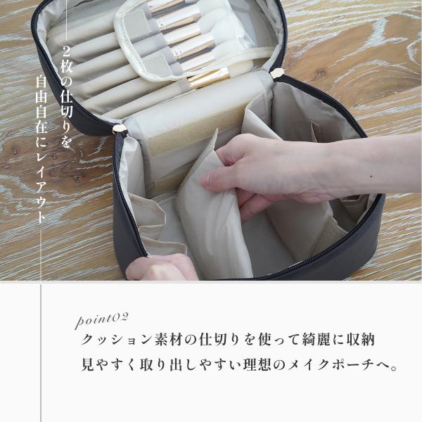 取り外しができる仕切りが2つ付属。仕切りを使って化粧ポーチの中をキレイに整頓!理想のメイクポーチに