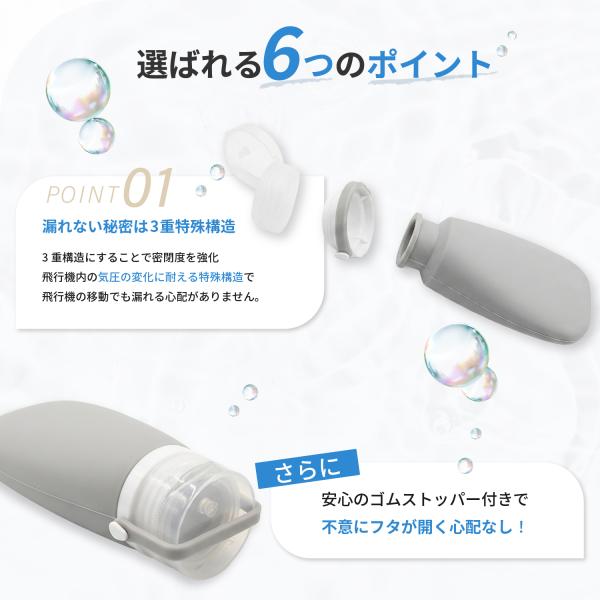 【液漏れを防ぐ特殊3重構造】旅行に必需品の液体ボトル。出張や旅先で液漏れを心配しないために開発したのがNOMAWの詰め替え用トラベルボトル。シリコンが蓋に隙間なく密着をし液漏れを防ぐ