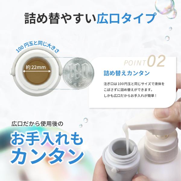 【使いやすさにこだわったトラベルボトル】注ぎ口は100円玉サイズと同じ2cmの広口タイプ。市販の液体ボトルは注ぎ口が狭いですが、NOMAWのシリコンボトルなら、シャンプー等をこぼさずに注ぐことができる!密閉度を高めつつ女性でも片手で簡単に開閉可能