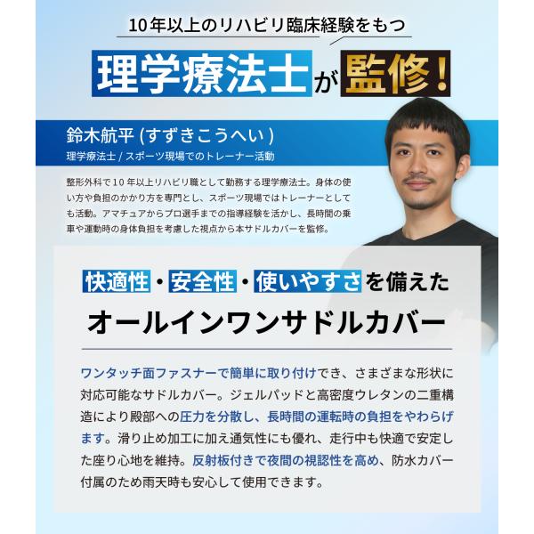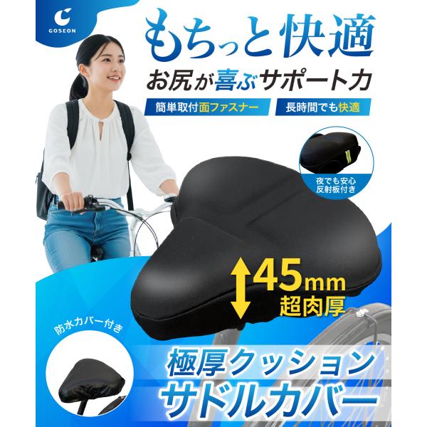 サドルカバー サドル クッション 厚さ45mmパッド 痛くない ズレない 自転車 防水カバー付き 反射板付き ママチャリ クロスバイク エアロバイク GOSEON