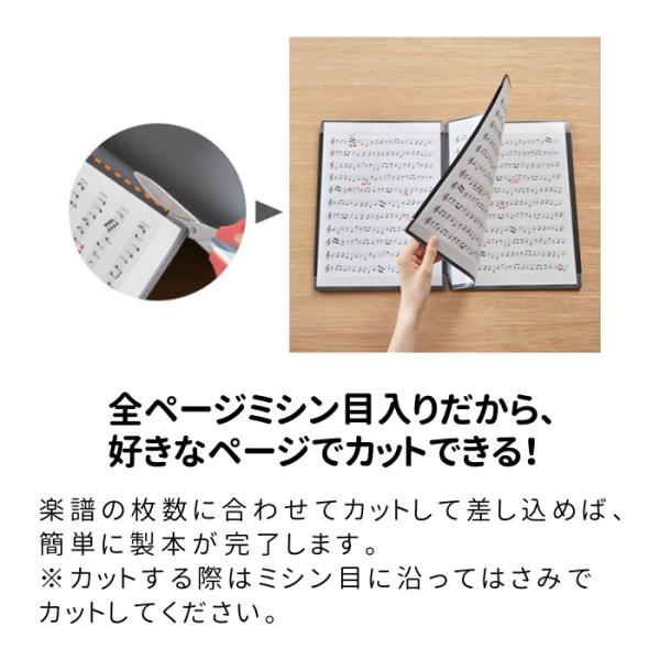 楽譜の枚数に合わせてカットして差し込めば、簡単に製本が完了します。
