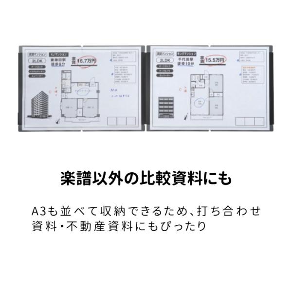 A3も並べて収納できるため、打ち合わせ資料・不動産資料にもぴったり