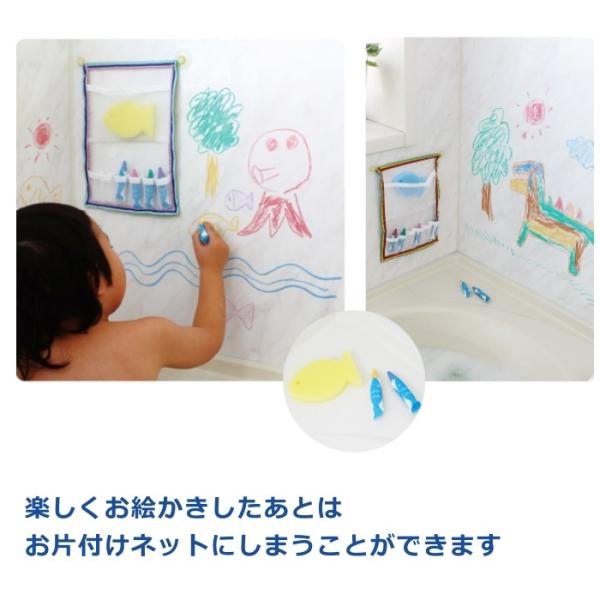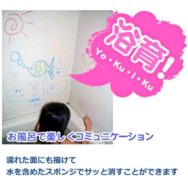 おふろ用キットパスは浴室の壁や浴槽などに直接描くこともできますが、使用前には必ず目立たない場所で消えるか試した上でお楽しみください。