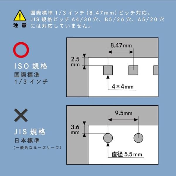 ※穴サイズ・穴ピッチはルーズリーフの規格(A4/30穴、B5/26穴)とは異なりますのでご注意ください。
