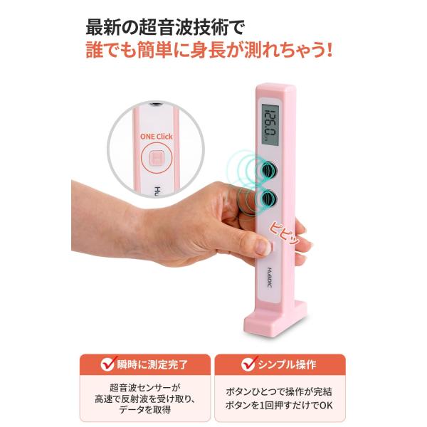 デジタル身長計 2mまで測定可能 正しく測れる 壁掛け不要 成長期 子ども 赤ちゃん 成長記録 身長 測り 保育園 施設 クリニック 超音波 HUK-2