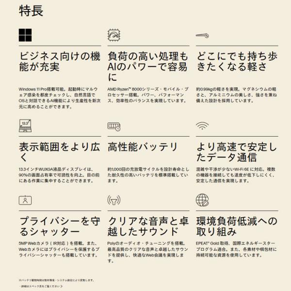 【新品ノートパソコン】HP EliteBook 635 Aero G11 A32TRPA#ABJ Win11Pro [Ryzen7 8840U メモリ16GB SSD512GB 無線 カメラ Type-C WUXGA 13.3型] :新品