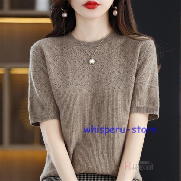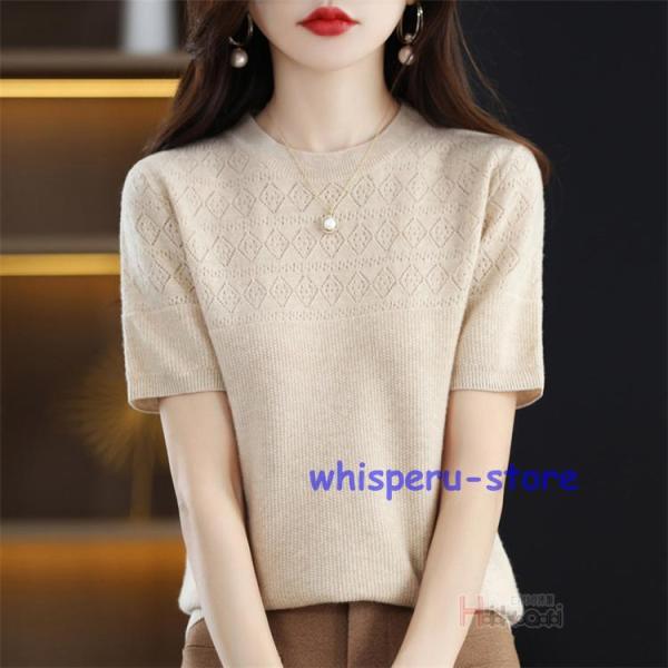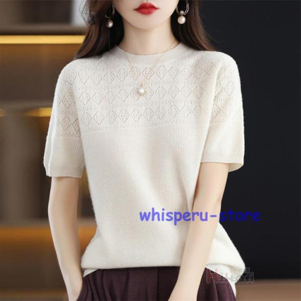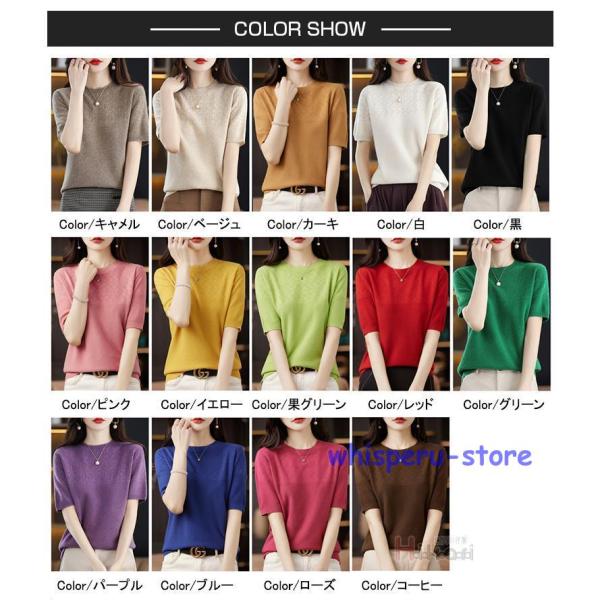 サマーニット クルーネック 半袖 レディース 春 夏 きれいめ オフィス 半袖ニット ゴルフウェア トップス ビジネス カジュアル プルオーバー インナー 洗えるニット ニットTシャツ サマーセーター カットソー 半袖 ニット ト トップス かわいい 冷房対策 着痩せ 無地 薄手 母の日