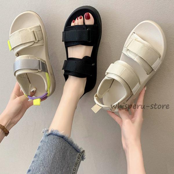 スポーツサンダル レディース 女性用 靴 スポサン ぺたんこ ベルクロ マジックテープ ベルト おしゃれ カジュアル スポーティー