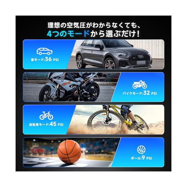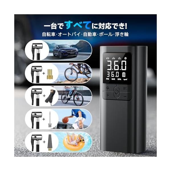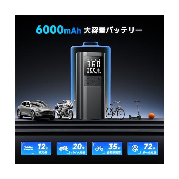 AAL 自転車 空気入れ 電動 電動空気入れ バイク 車 用 コードレス 6000mAh 大容量バッテリー 最大圧力150PSI 仏/英/米式バルブ