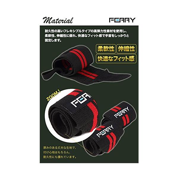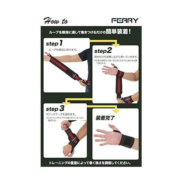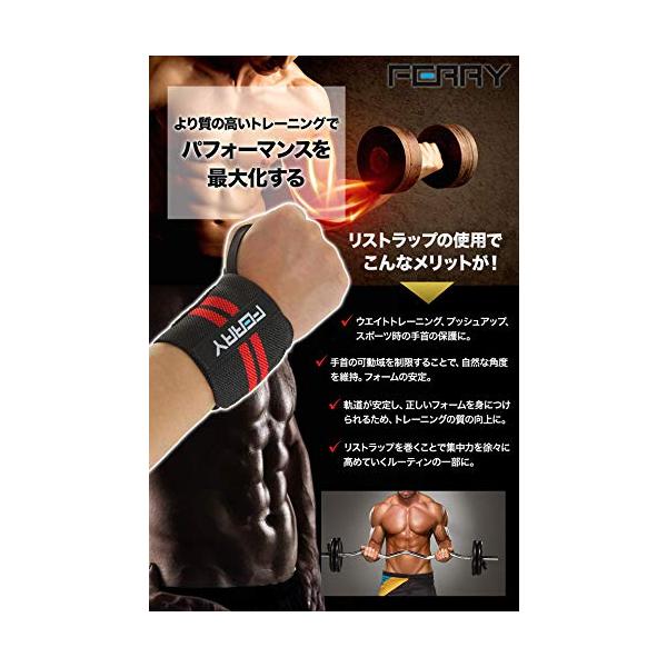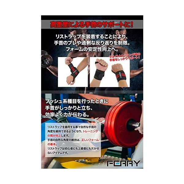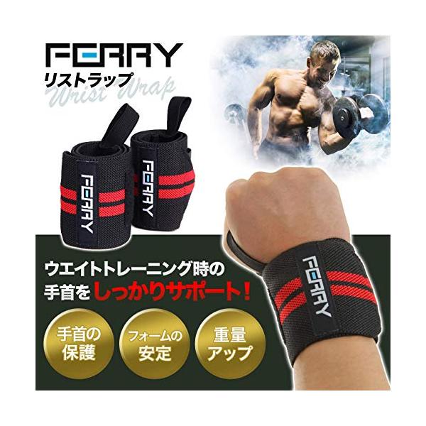 (フェリー) FERRY リストラップ ウエイトトレーニング 手首固定 (2枚組) ブラック/レッド