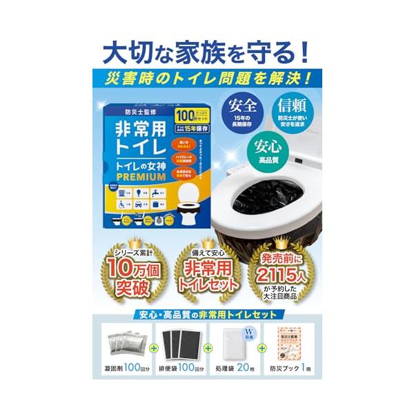 どこでも簡単トイレ トイレの女神PREMIUM 簡易トイレ 【防災士が監修】 15年保存&日本製 携帯/防災/非常用トイレ 防災グッズ 防災ガイドブ