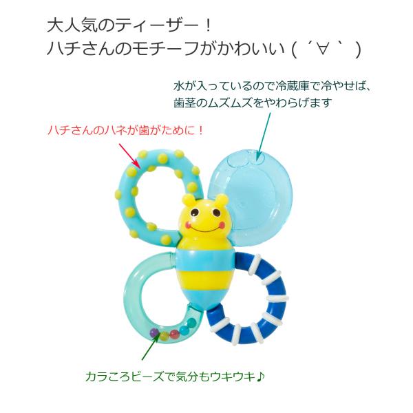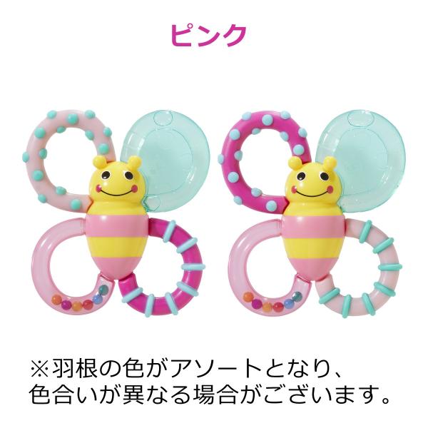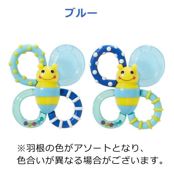 水が入っていて弾力がある羽や透明リングの中でビーズがカラコロする羽など赤ちゃんのカミカミにぴったりのお友だち。