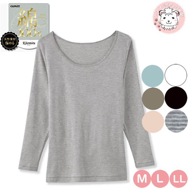 8分袖インナー レディース グンゼ キテミル 柔らか綿 綿100% 長袖 8分袖 えり広め インナーシャツ MF5046A M/L/LL