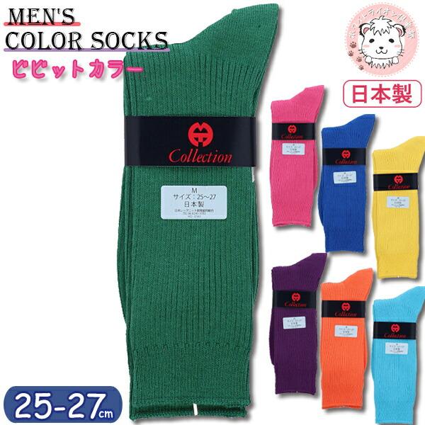 コレクション ビビットカラー リブ編み カラーソックス クルー丈 日本製 25-27cm | 靴下 メンズ ソックス リブ レギュラーソックス カラフル 派手 おしゃれ