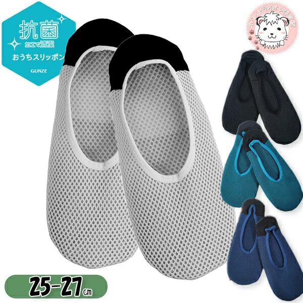 グンゼ おうちスリッポン うちコレ ルームシューズ かかとクッション強化タイプ 25-27cm | 洗える スリッパ メッシュ メンズ AUW201/AUZ201 GUNZE UCHI-COLLE