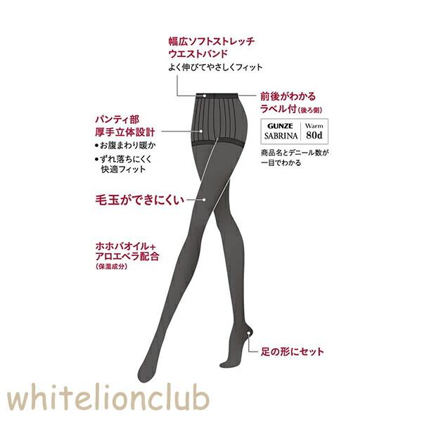 グンゼ サブリナ タイツ Warm 80デニール 抗菌防臭 デオドラント加工 静電気防止 M-L/L-LL | 秋冬 秋 冬 無地 レディース ナイロン 下着 肌着 インナー SBW53A