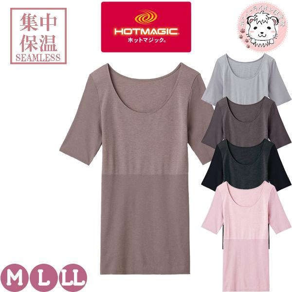 グンゼ ホットマジック 5分袖インナー 集中保温 吸湿発熱 M/L/LL | 綿混 脇縫いなし 秋冬 秋 冬 レディース レーヨン 下着 肌着 インナー MH9448N/R GUNZE