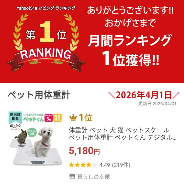 動物病院に行く前の体重チェック用としてもおすすめです。