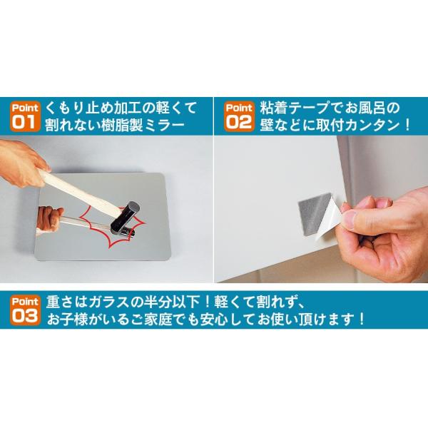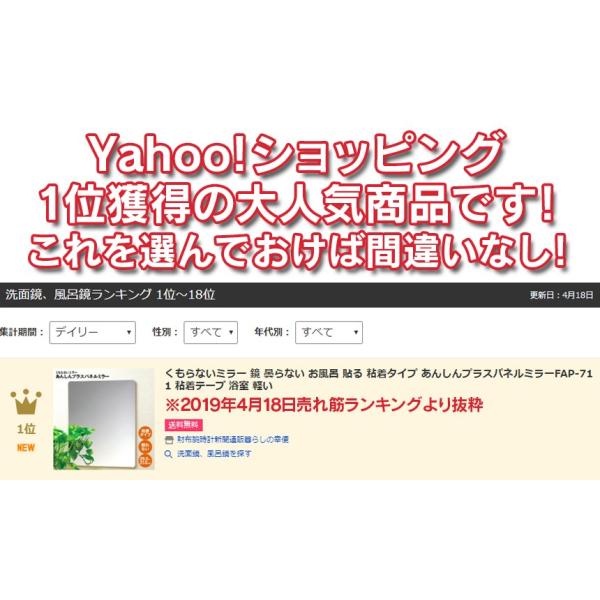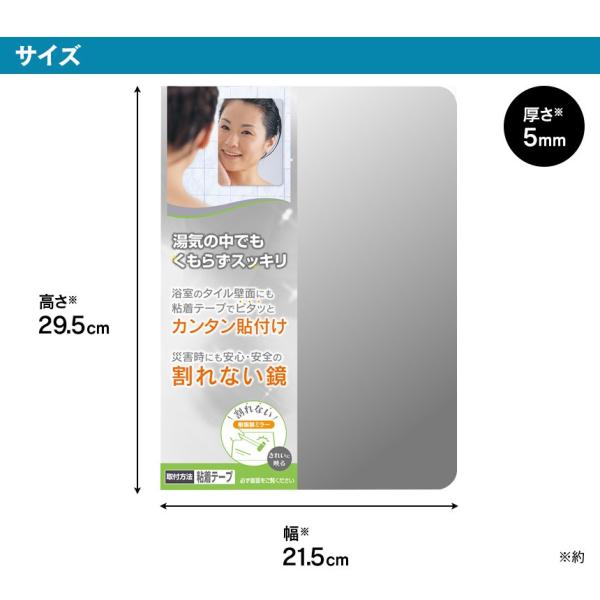 浴室鏡 鏡 浴室 曇り止め 295 × 215 mm くもらないミラー 鏡 曇らない お風呂 貼る 粘着タイプ 割れない鏡 FAP-711 粘着テープ 軽い