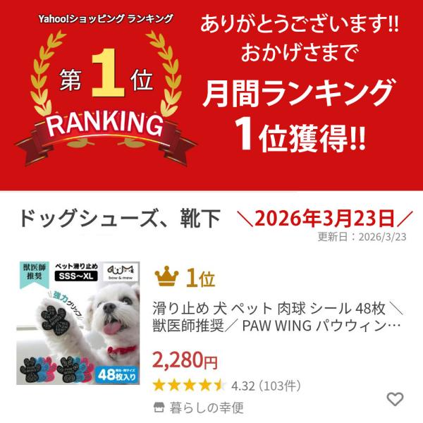 滑り止め シール 犬 肉球シール 48枚 \獣医師推奨/ PAW WING パウウィング Grip plus スリット bow&mew 犬靴下 シリコン 後ろ足 フットパッド
