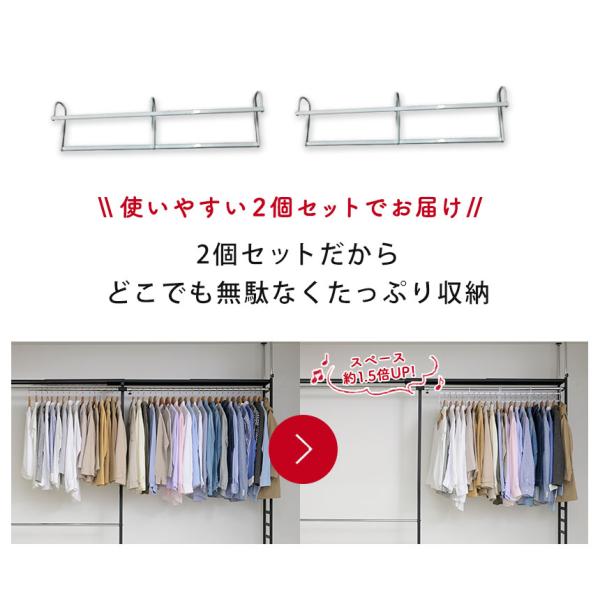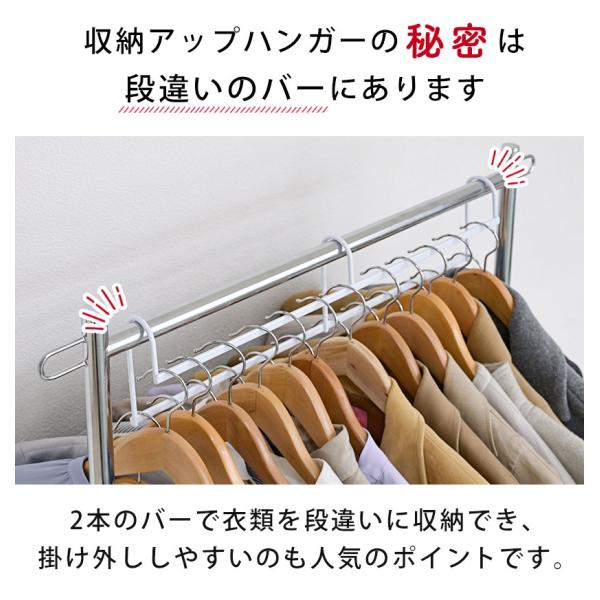 収納アップハンガー 幅50cm 2本組 収納力アップ 衣類 クローゼット 整理 2段ハンガー 段違い 洋服収納 衣類収納
