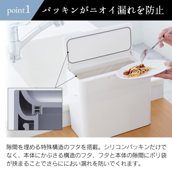 ゴミのニオイ漏れを防ぐ密閉シリコンパッキン構造のゴミ箱。