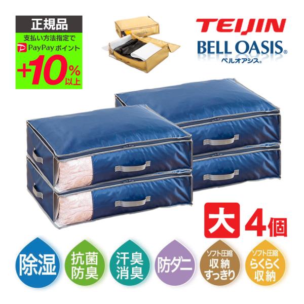 乾っとデオケースライト 収納ケース 2025 ベージュ 衣類収納ケース 布団収納ケース テイジン light 大4個 2個組×2セット ベルオアシス 防ダニ 防臭 消臭