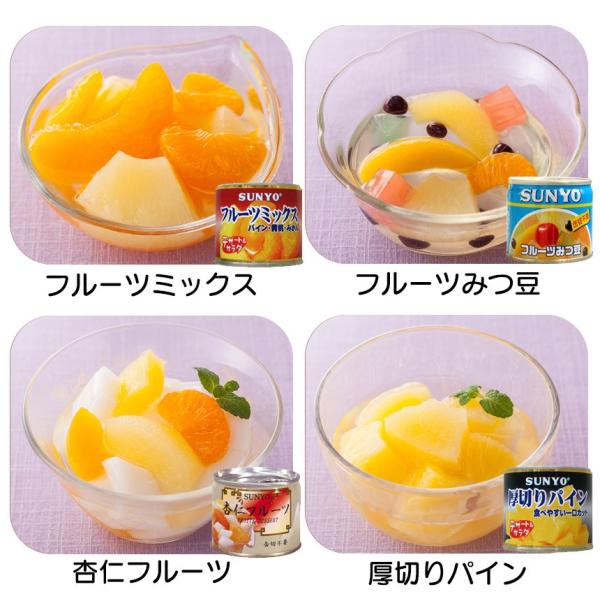 ■種類 フルーツミックス・フルーツみつ豆・杏仁フルーツ・厚切りパイン・パイン&みかん